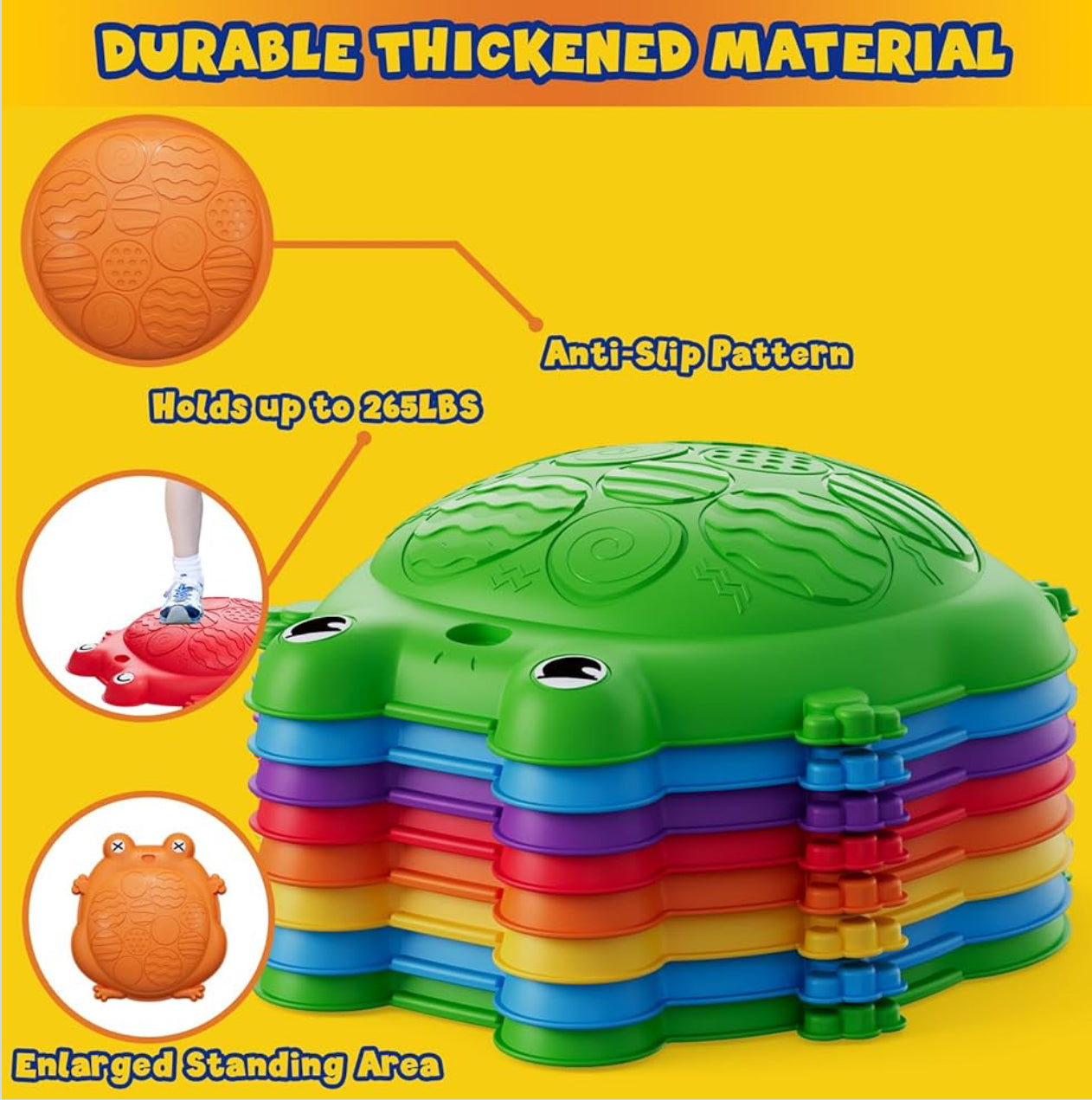 Dieses hochwertige Balance-Trittstein-Spielset wurde speziell zur Förderung von Gleichgewicht, Koordination und motorischen Fähigkeiten von Kindern entwickelt.