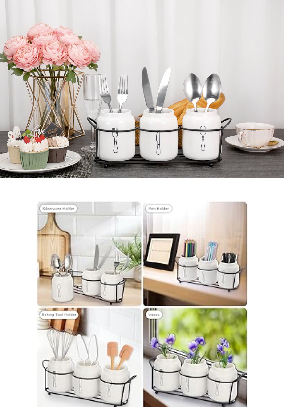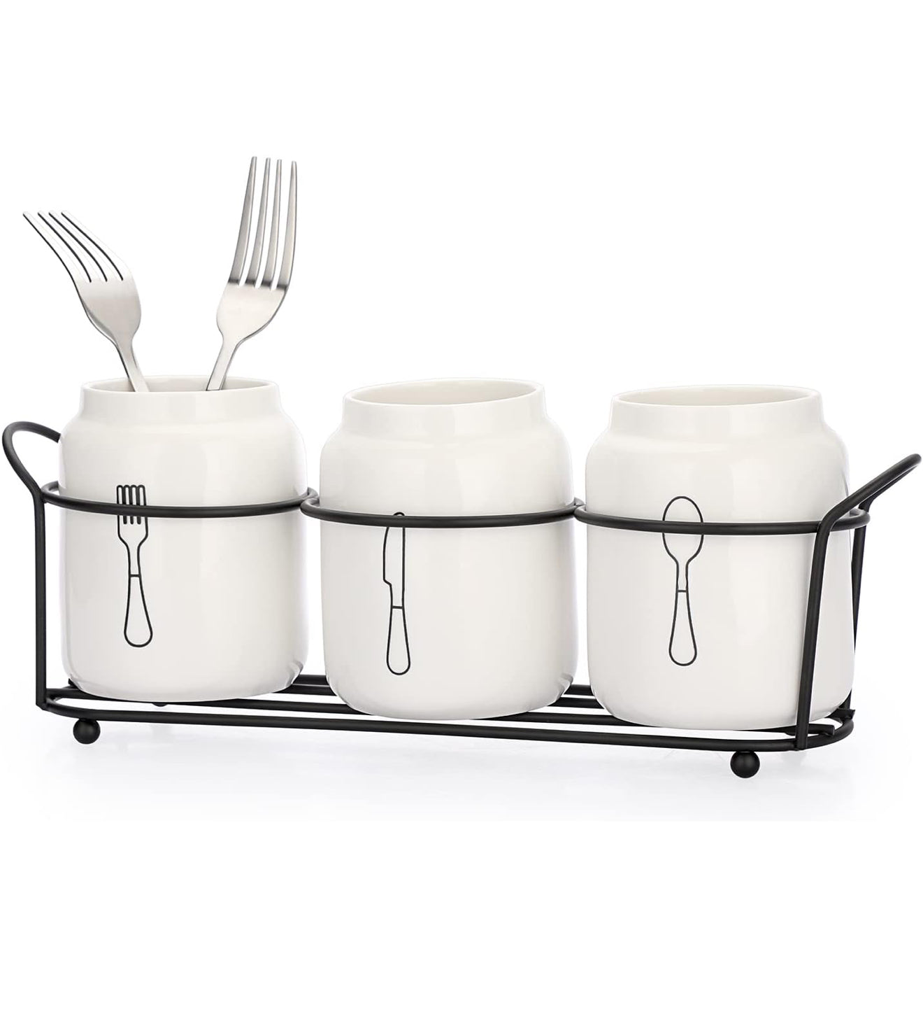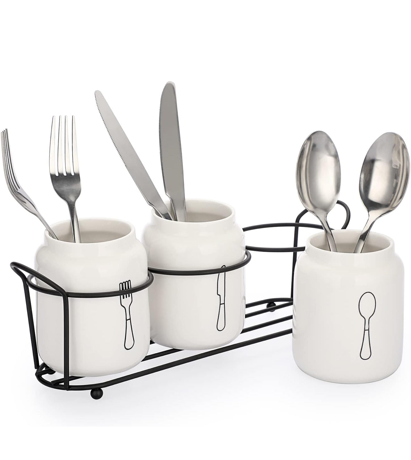 Besteckhalter aus Keramik 🥄 Gabel Messer Löffel + Metallständer Weiß Küche