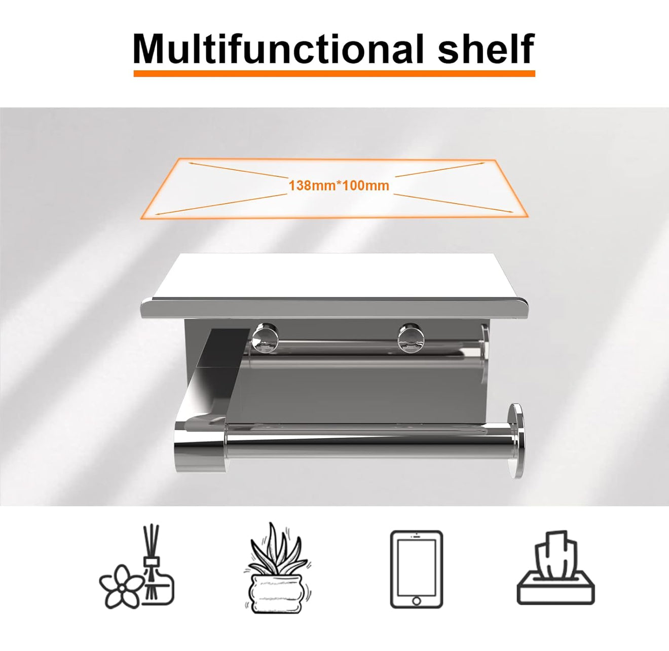 2X Wandmontierter Toilettenpapierhalter mit Ablage – Edelstahl, Silber