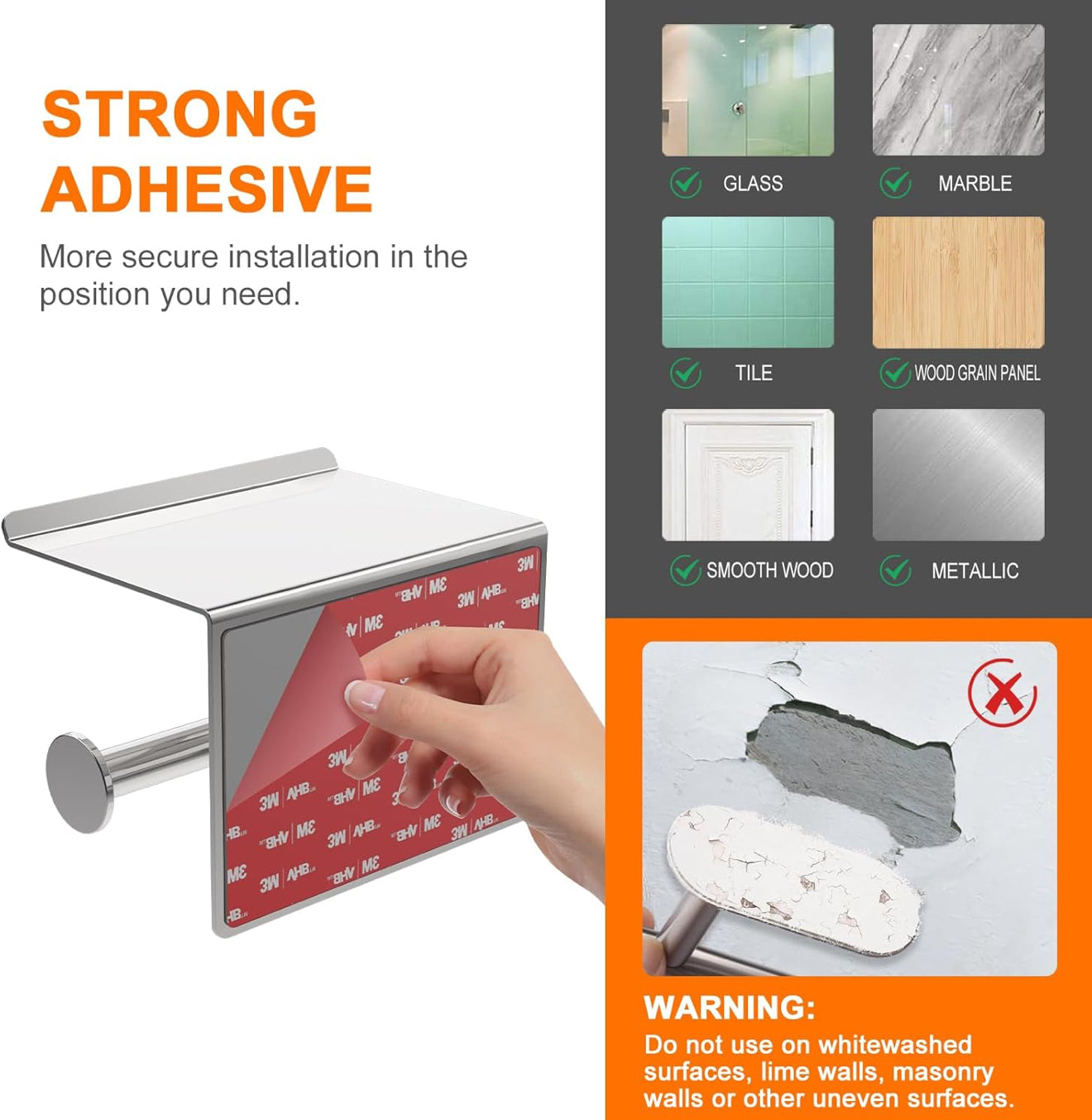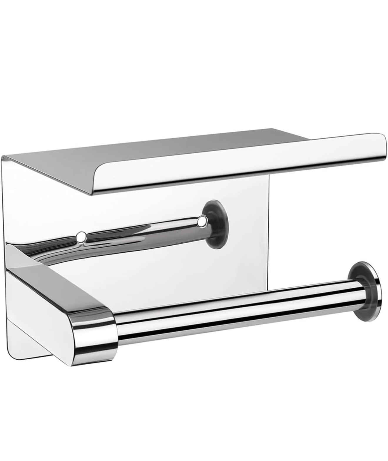 2X Toilettenpapierhalter Edelstahl mit Ablage, Selbstklebend oder Bohren, Silber
