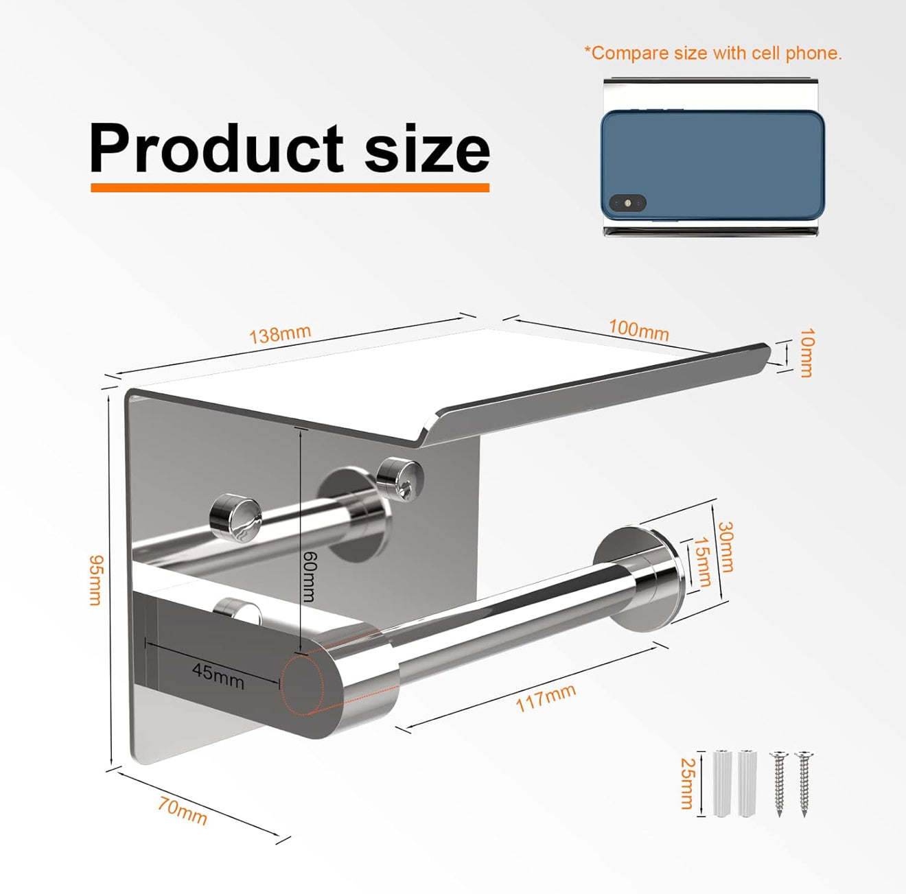 Dieses Set enthält 2 hochwertige Toilettenpapierhalter aus Edelstahl mit Ablagefach. Jeder Halter bietet zusätzlichen Platz für Handy, kleine Pflanzen, Parfüm, Feuchttücher oder andere Badezimmeraccessoires.