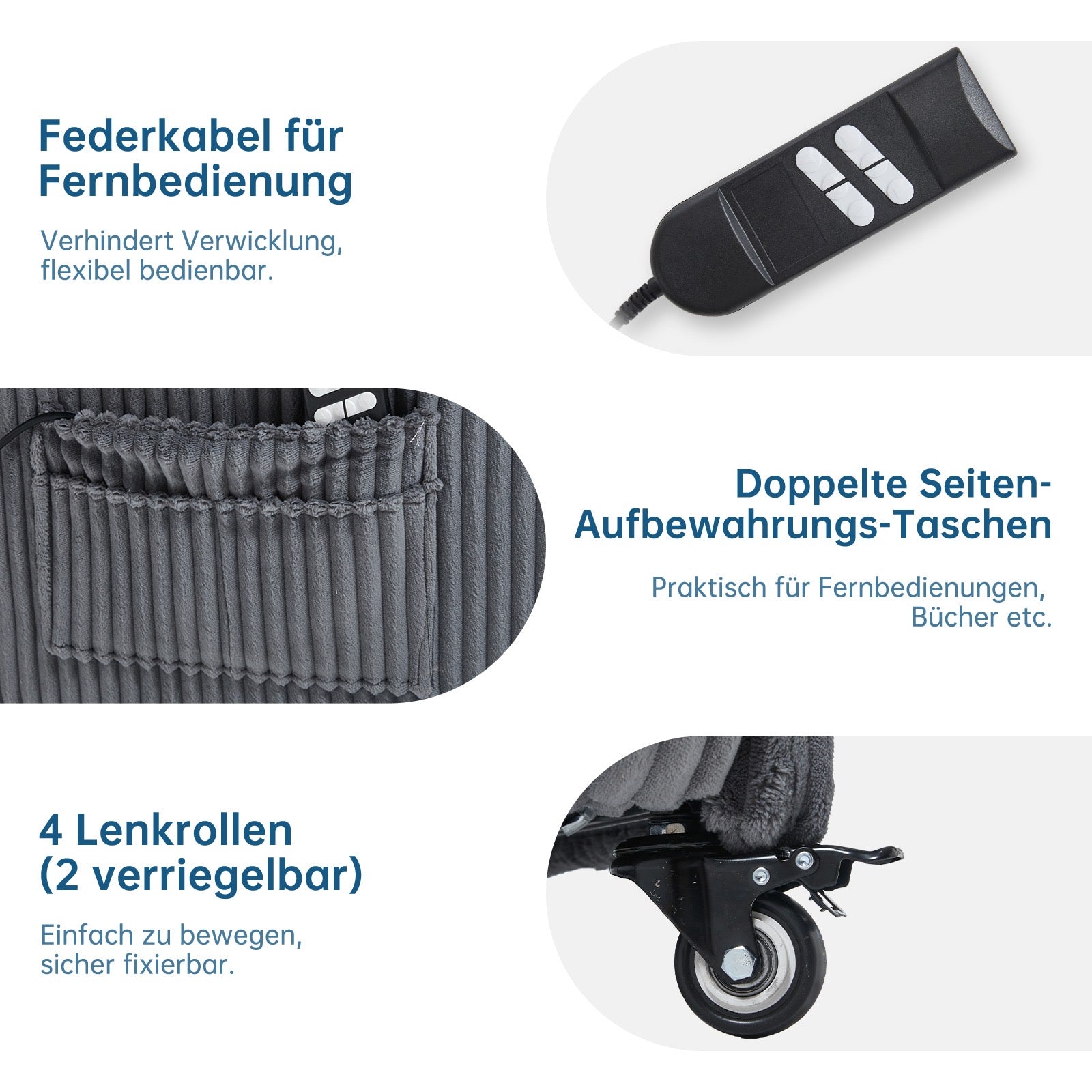 • ✅ Leistungsstarker Doppelmotor → Rückenlehne & Fußstütze unabhängig voneinander verstellbar – für individuelle Positionen beim Lesen, Fernsehen oder Schlafen.