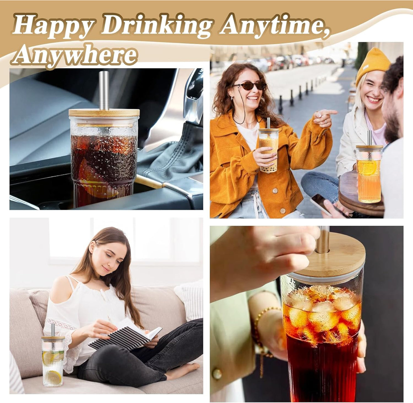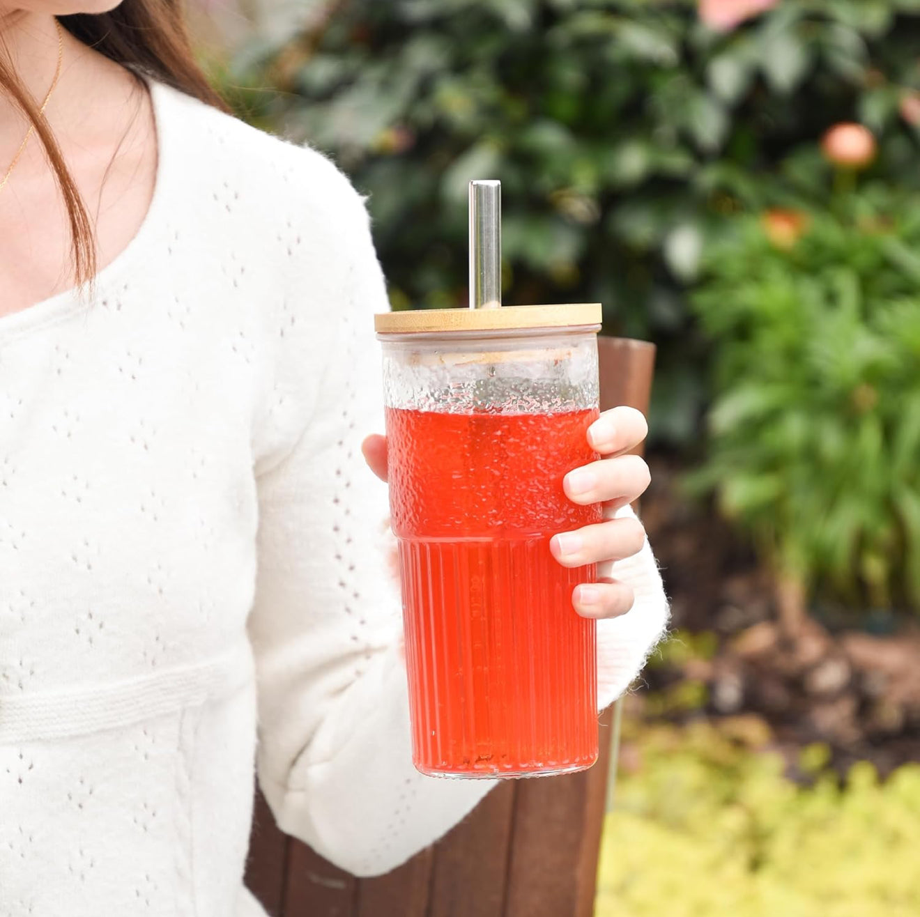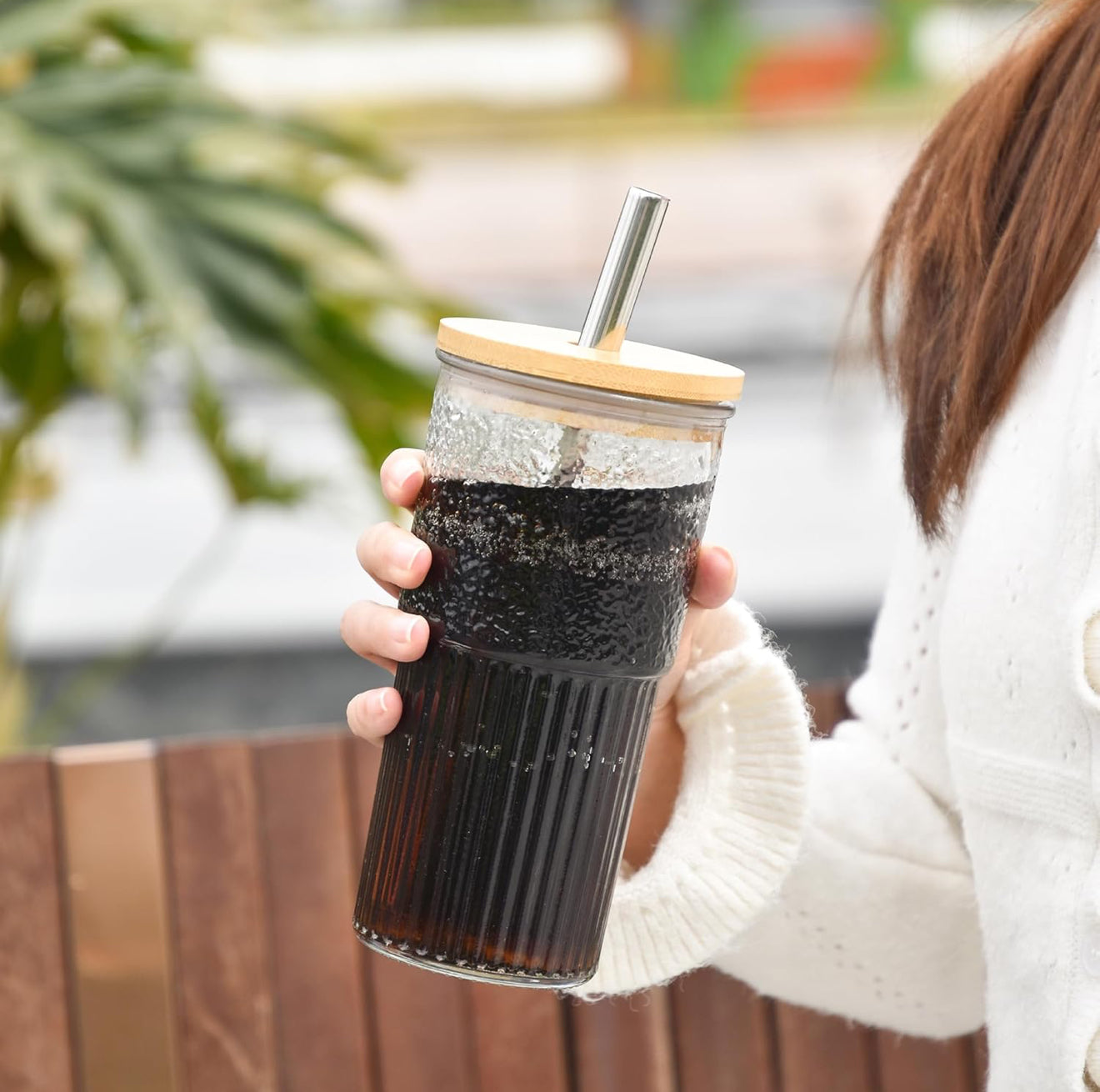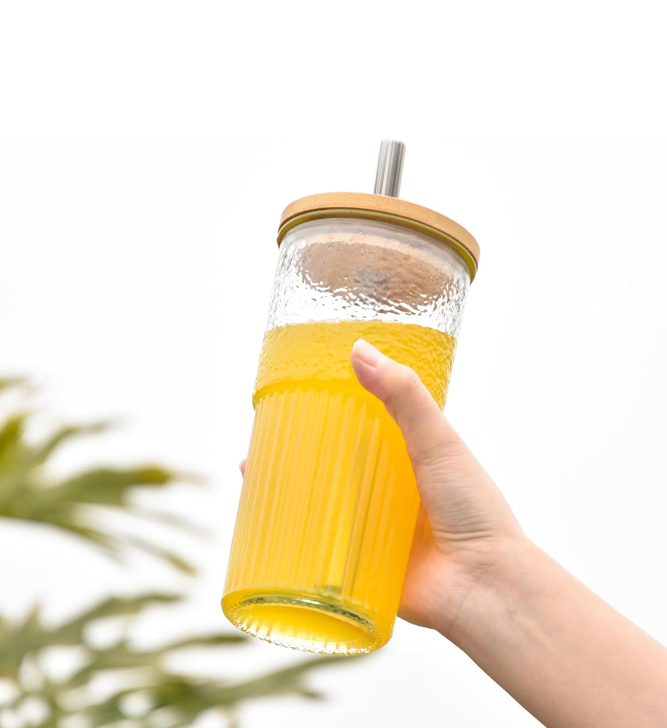 • Material: Glas + Bambusdeckel + Edelstahlstrohhalm