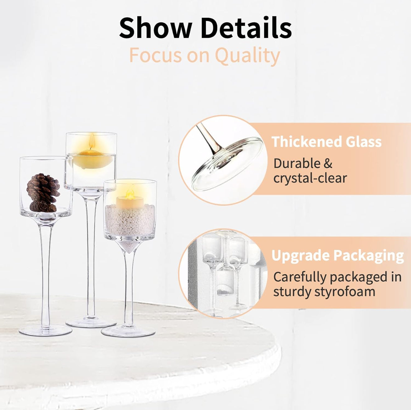 Dieses 6-teilige Glas-Kerzenhalter-Set (Teelicht & Schwimmkerzen) verleiht jedem Raum, Event oder Dinner-Tisch einen modernen, stilvollen Akzent. Die transparente Kristalloptik sorgt für eine brillante Lichtwirkung und schafft eine warme, einladende Atmosphäre.