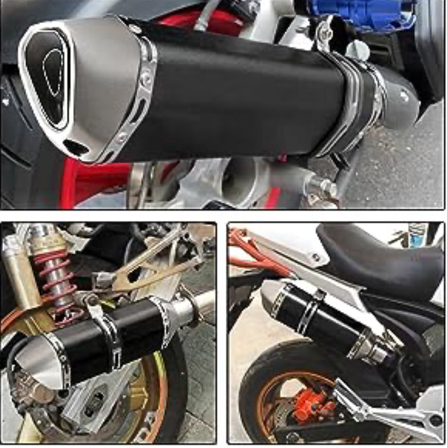 Bitte prüfen Sie vor Montage den Rohrdurchmesser Ihres Auspuffs (38–51 mm) und die mittlere Position des Motors für optimale Passform.