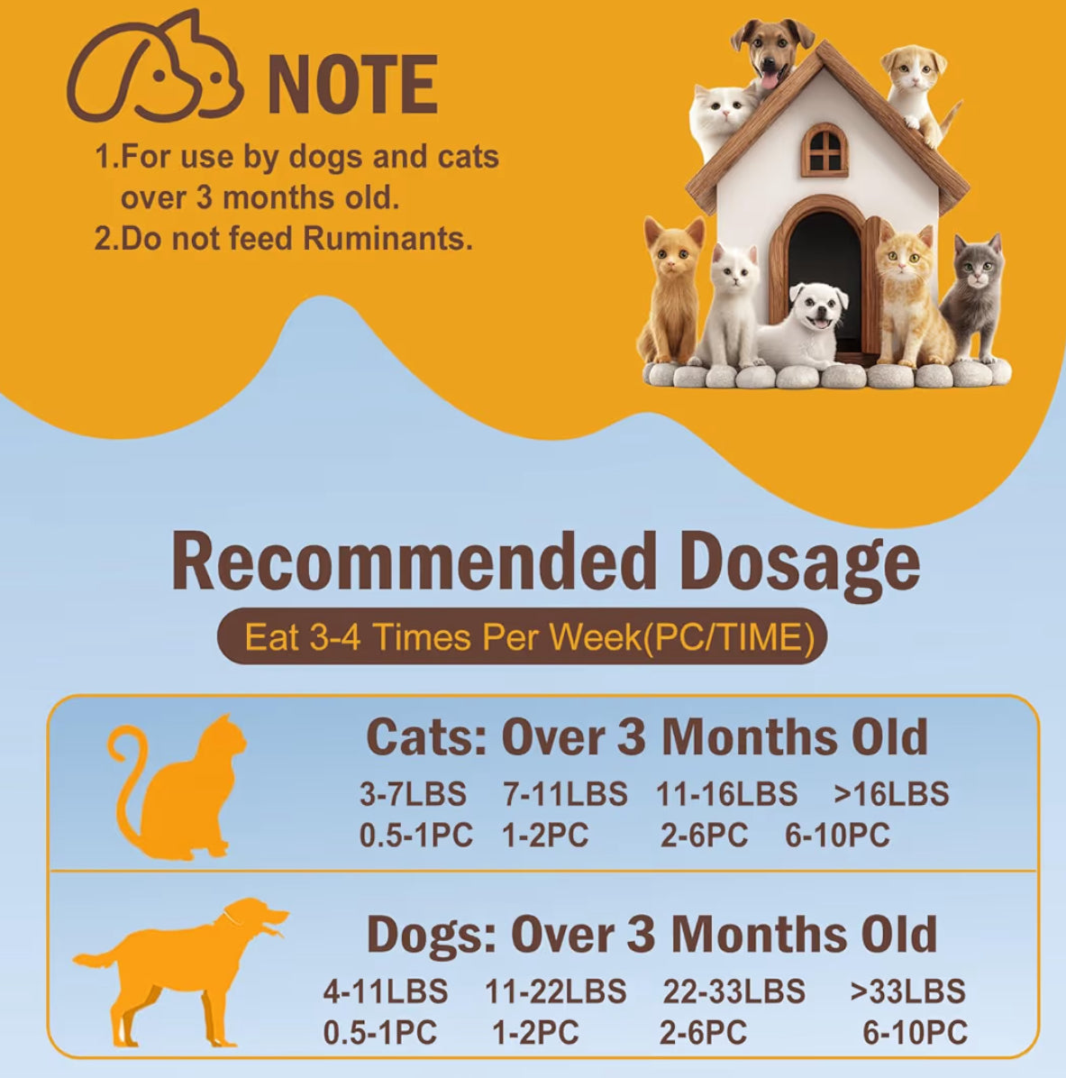 Hinweis: Dieses Produkt ist ein Ergänzungsfuttermittel für Hunde und Katzen.