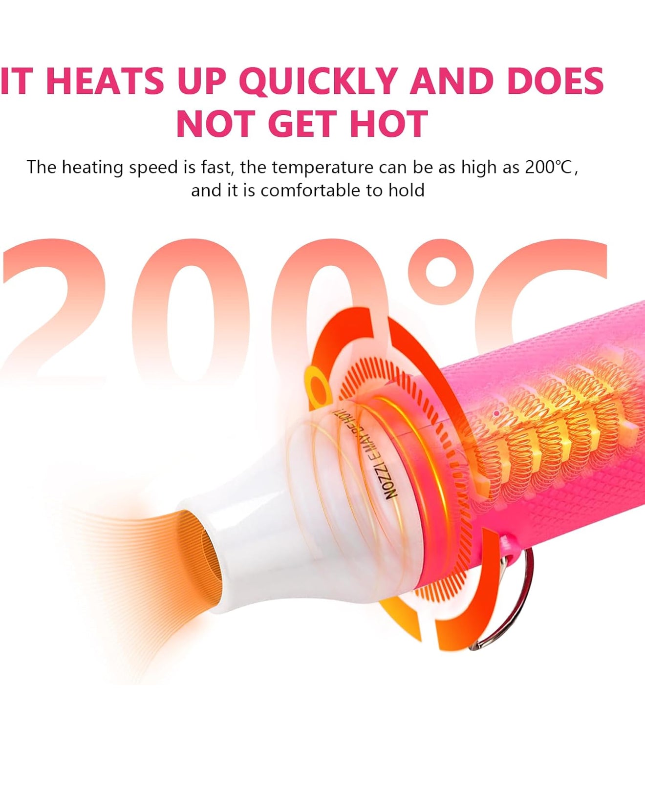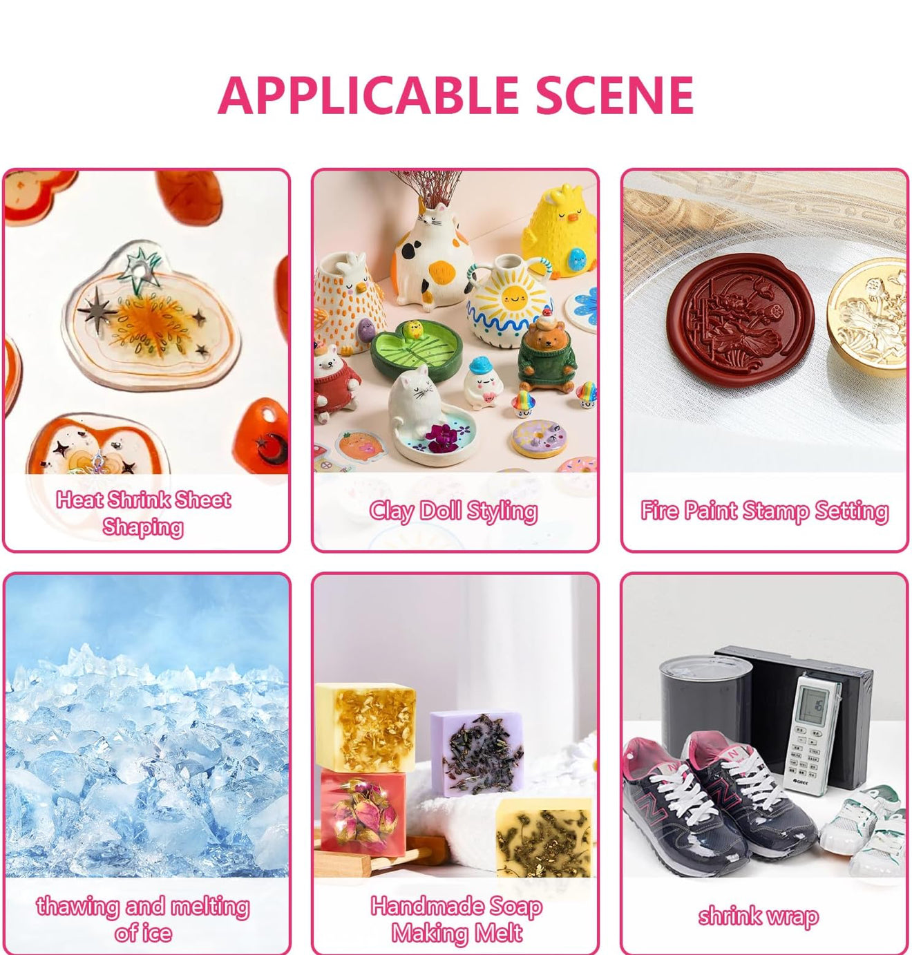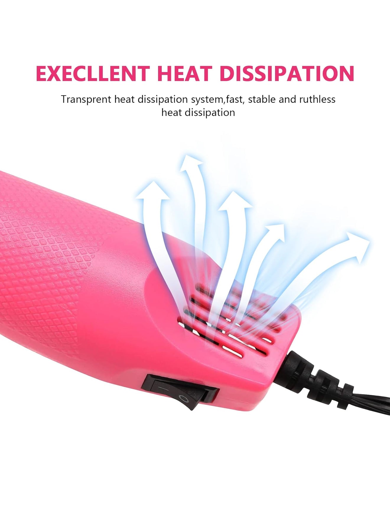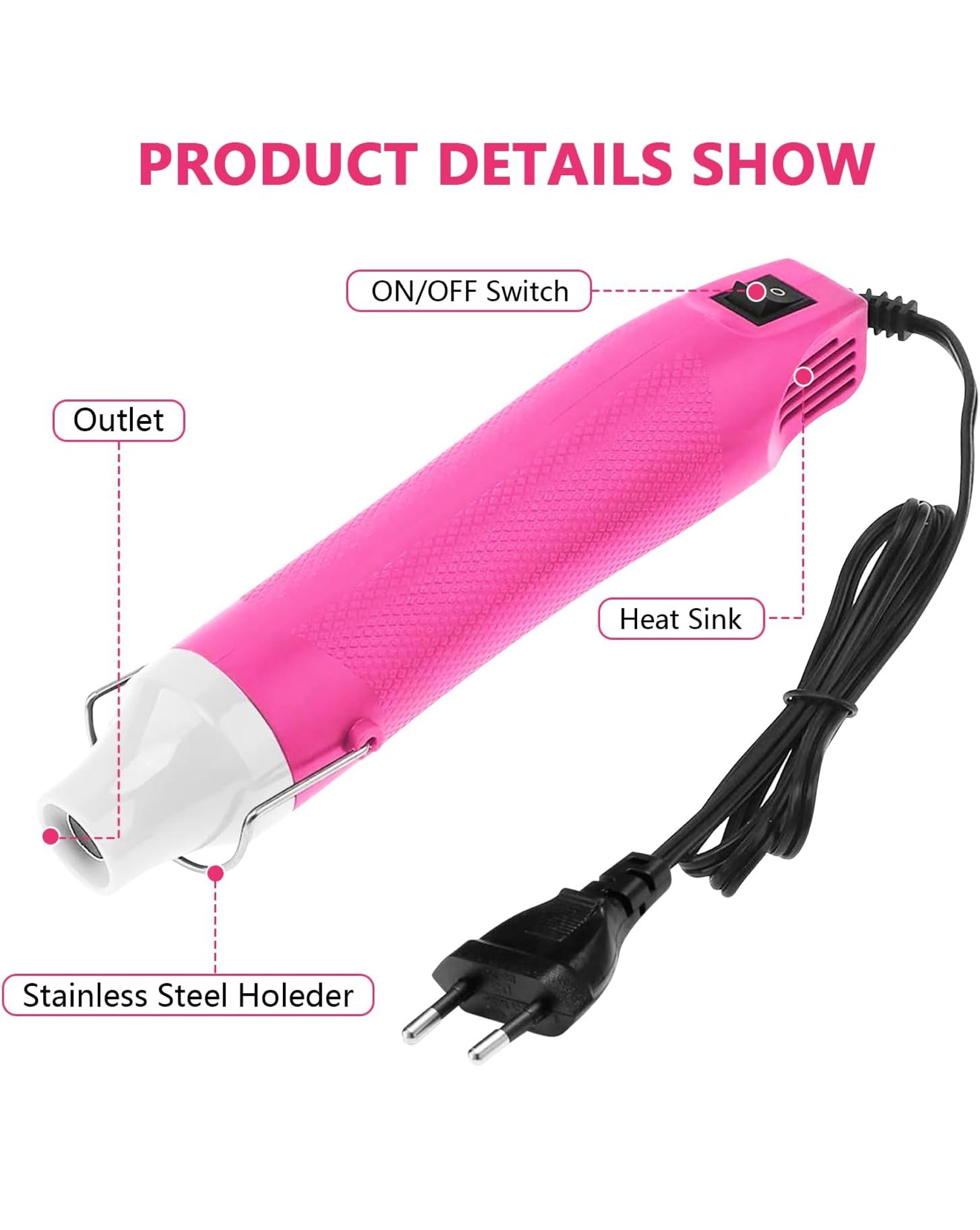 Kompakte und leistungsstarke Heißluftpistole 220 V, 300 W für Heimwerker und DIY-Projekte. Diese Mini-Heißluftpistole eignet sich ideal zum Schrumpfen von Schläuchen, Trocknen von Farbe, Embossing, Aufweichen von Kleber, PVC-Verpackung oder für schnelle Reparaturen. Das ergonomische Design und das Mikro-Kühlsystem sorgen dafür, dass die Handbewegung bei 200 °C nur ca. 26° beträgt, für komfortables Arbeiten.