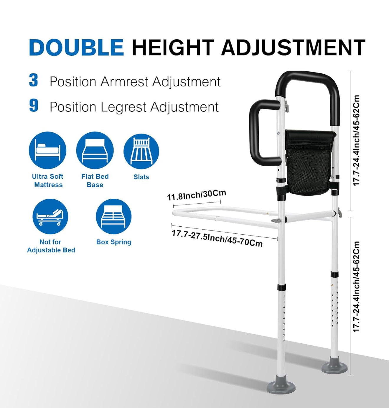- Doppelgriffe für mehr Flexibilität: Zwei rutschfeste, schaumgepolsterte Griffe ermöglichen die Nutzung beider Hände gleichzeitig. Ergonomisches Design für einfaches Aufstehen, auch bei eingeschränkter Handkraft. Zusätzlicher Griff kann flexibel an beiden Seiten des Bettes angebracht oder entfernt werden.